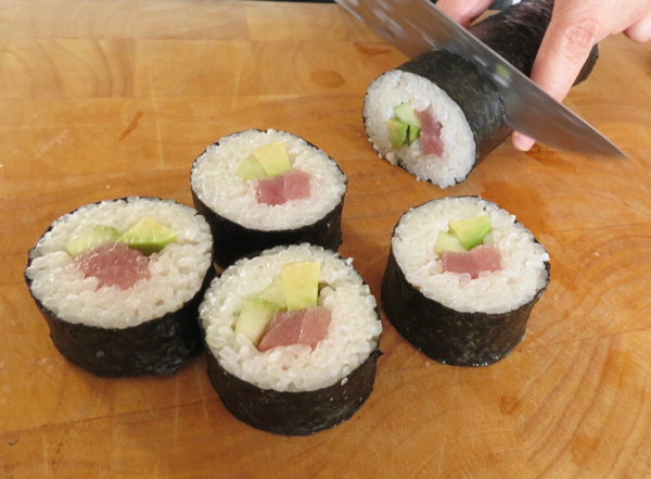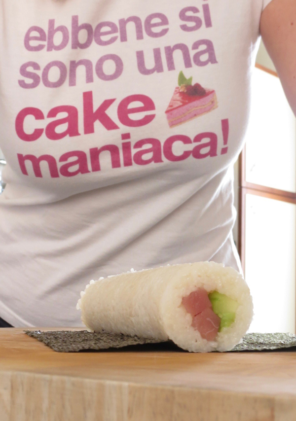 Con questo tubo che serra insieme il riso e la sua farcitura, e poi spara fuori un cilindro perfetto da avvolgere nell’alga nori e affettare, farò tutta un’altra figura quando invito gli amici a cena!