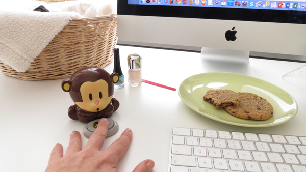 Ho comprato una base per lo smalto, un paio di colori e, su TroppoTogo, questa scimmietta che soffia aria per asciugare più velocemente l’opera.