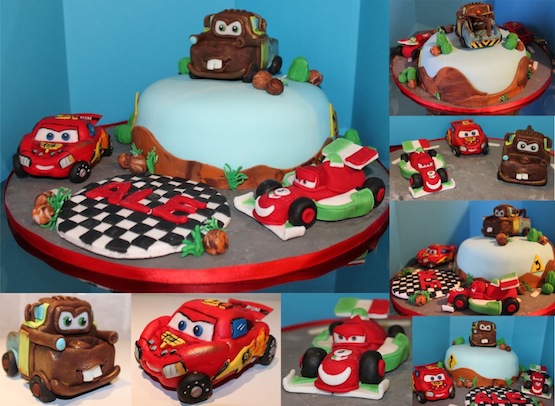Torte Cars di cake design con i simpatici personaggi del cartone animato Disney: Saetta McQueen, Luigi, Cricchetto e Francesco Bernulli… bisogna mangiarli in fretta sennò corrono via!