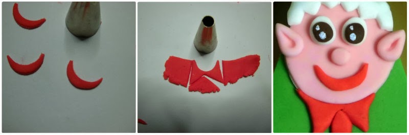 Create i colletti del vestitino degli elfi ritagliando con un cono per creare la parte tonda del collo, e con un coltellino le punte.