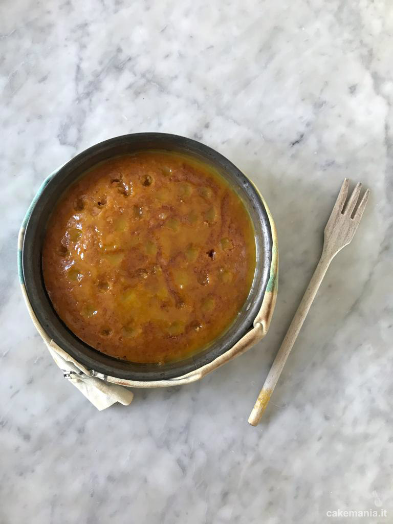 - Quando la torta è fredda, fate diversi fori con il manico di un cucchiaio di legno o con un oggetto simile.